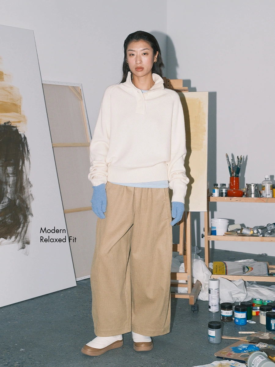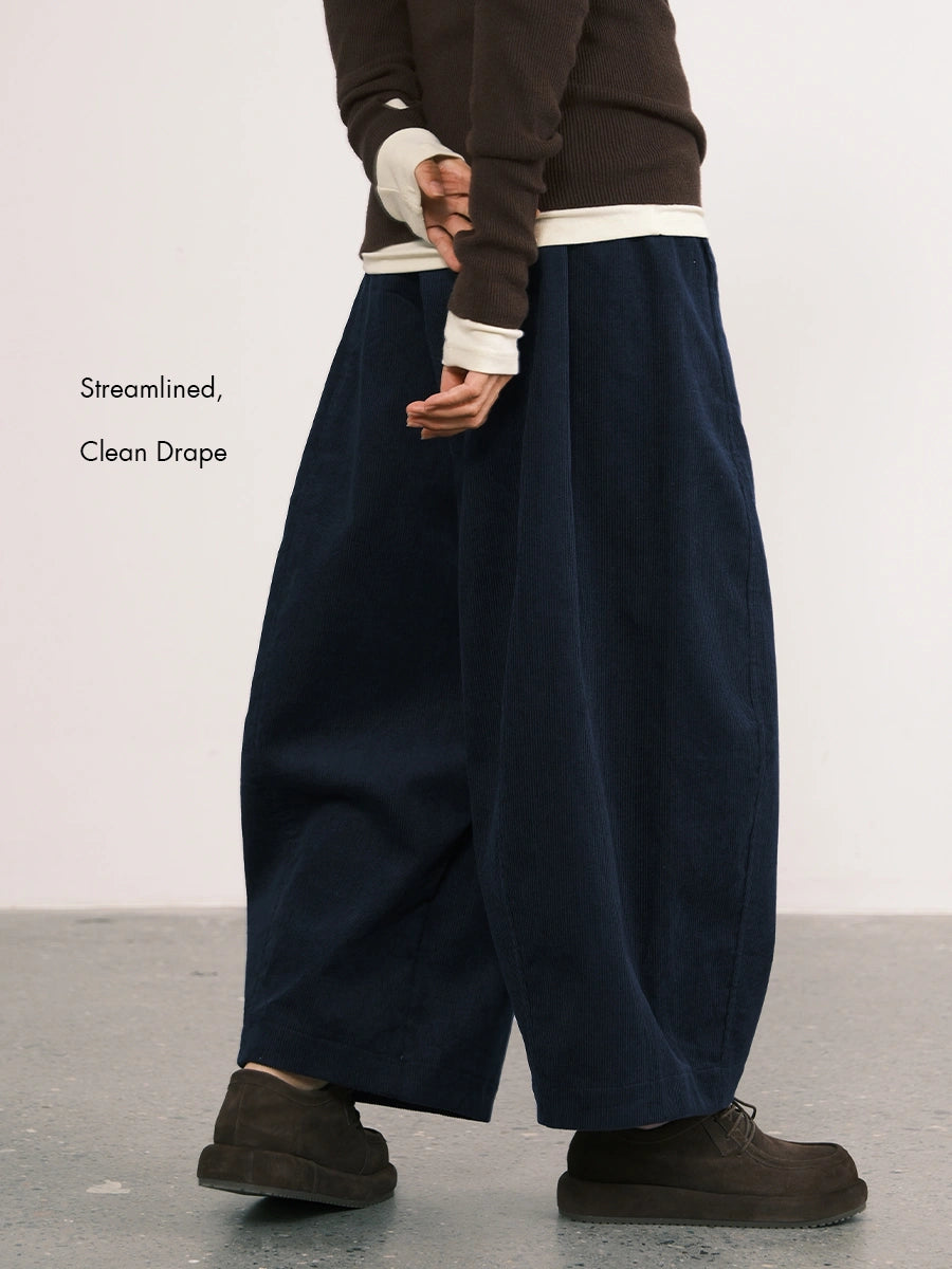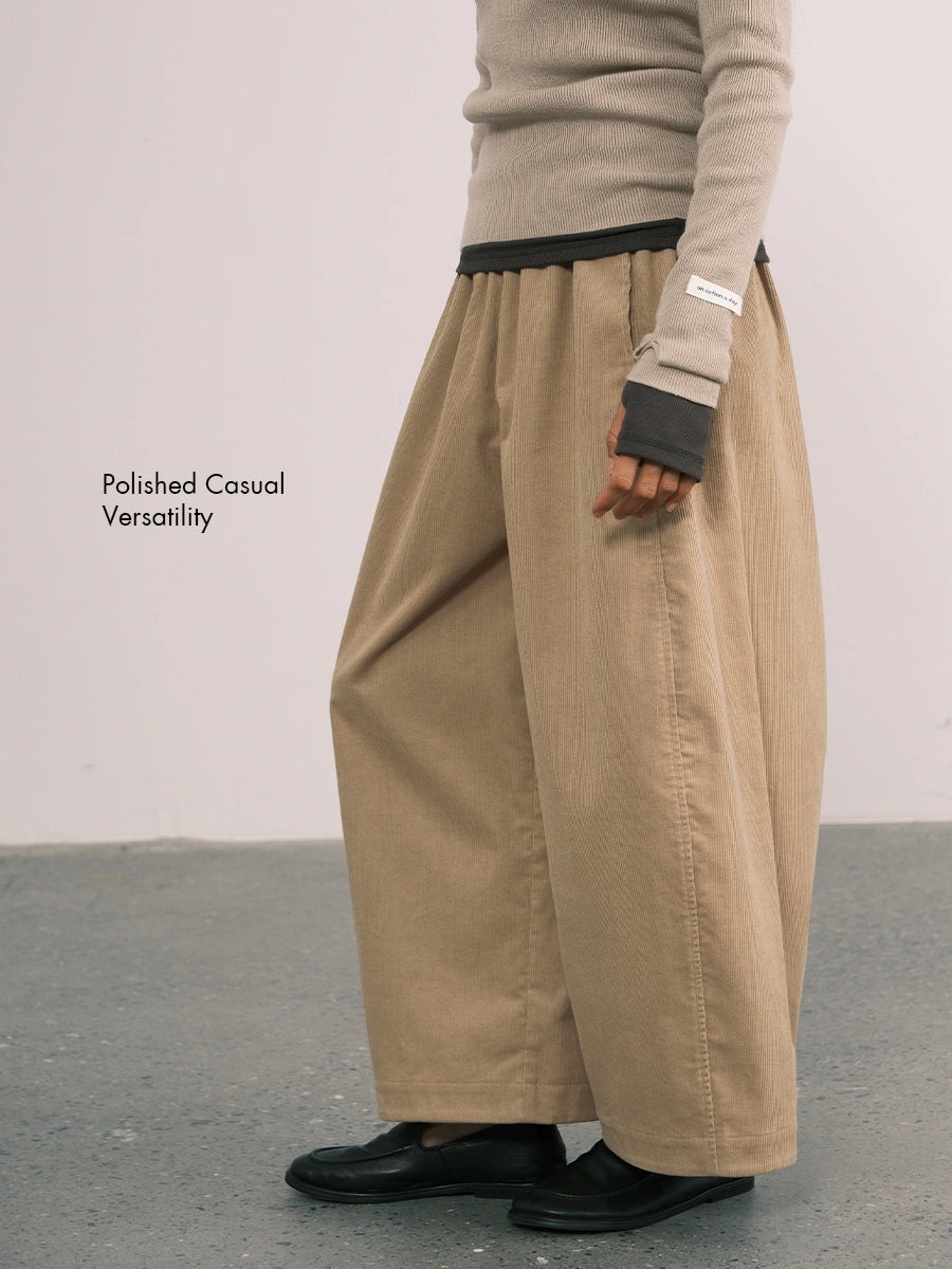 Corduroy Wide-Leg Lantern Ankle Pants