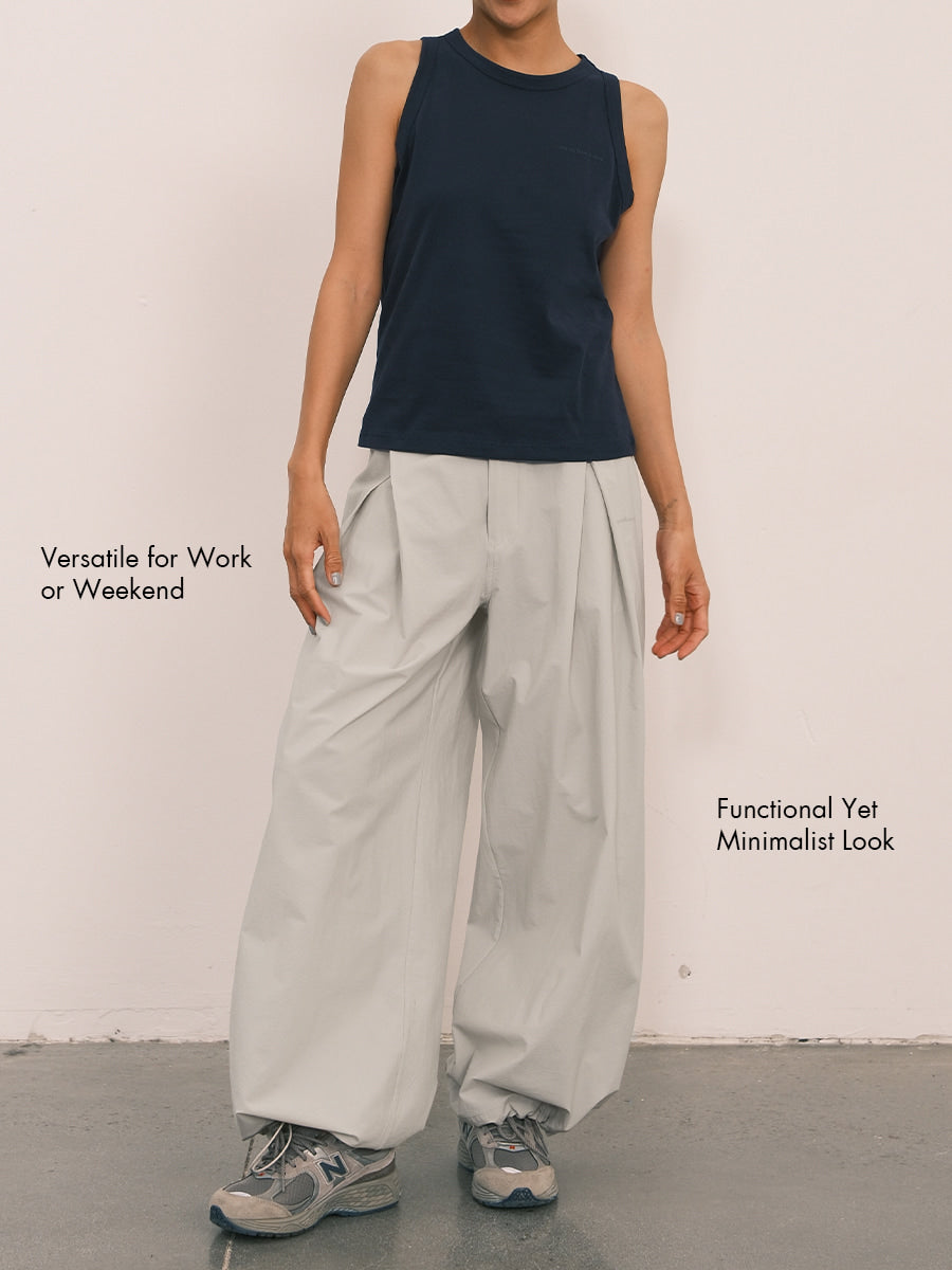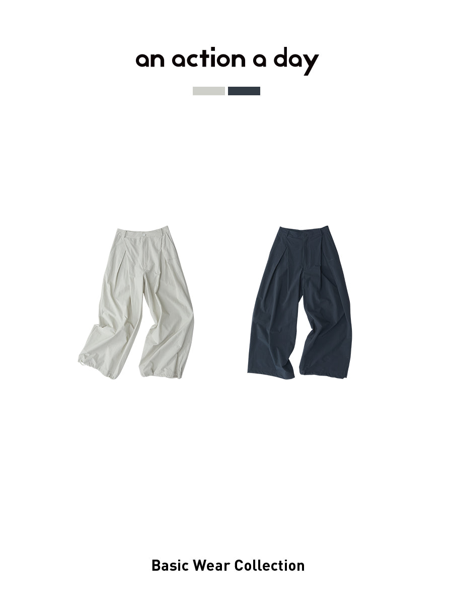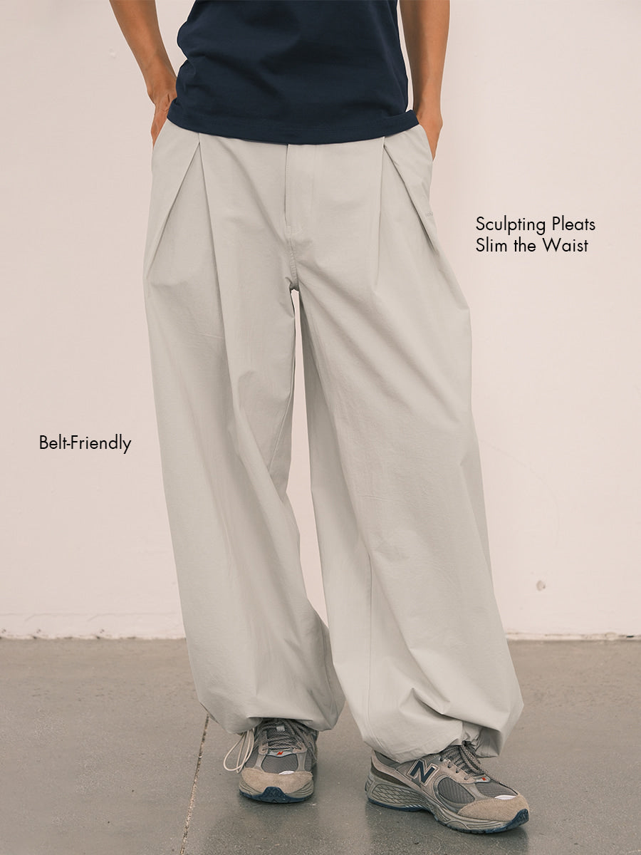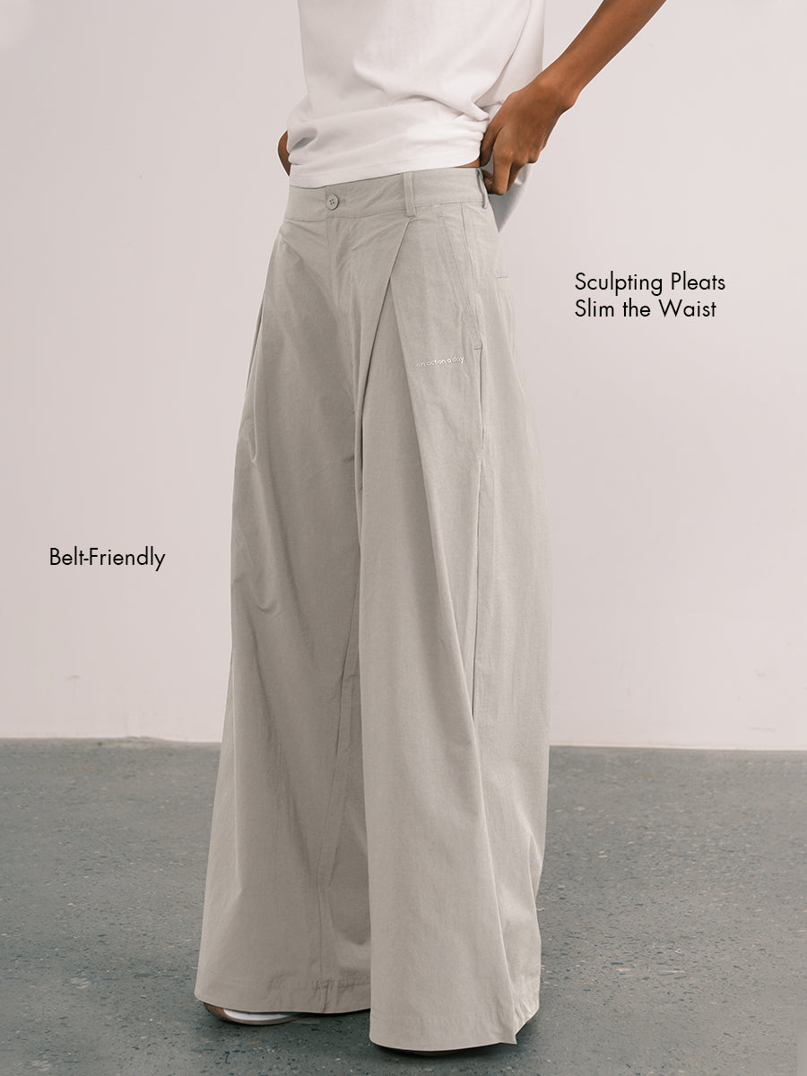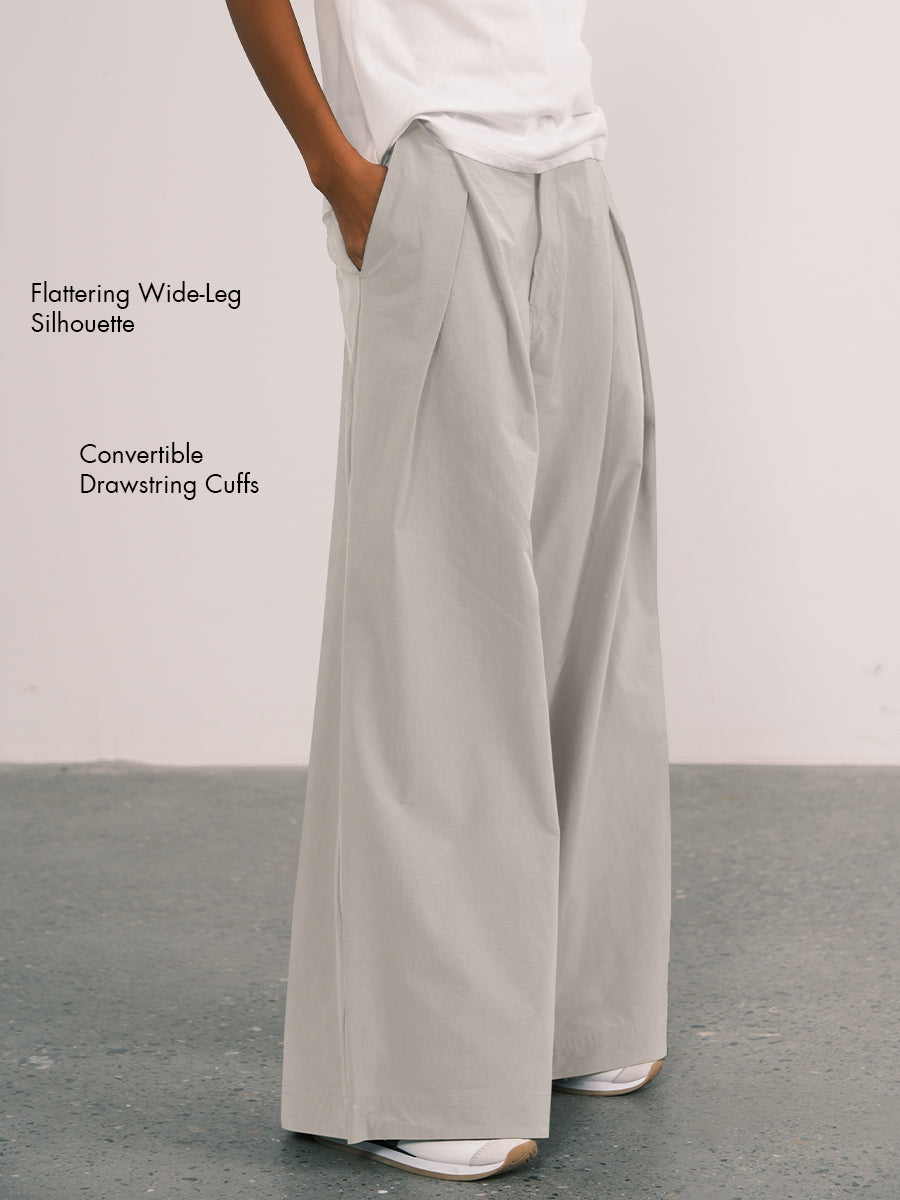 Pleated Wide-Leg Pants with Adjustable Cuffs