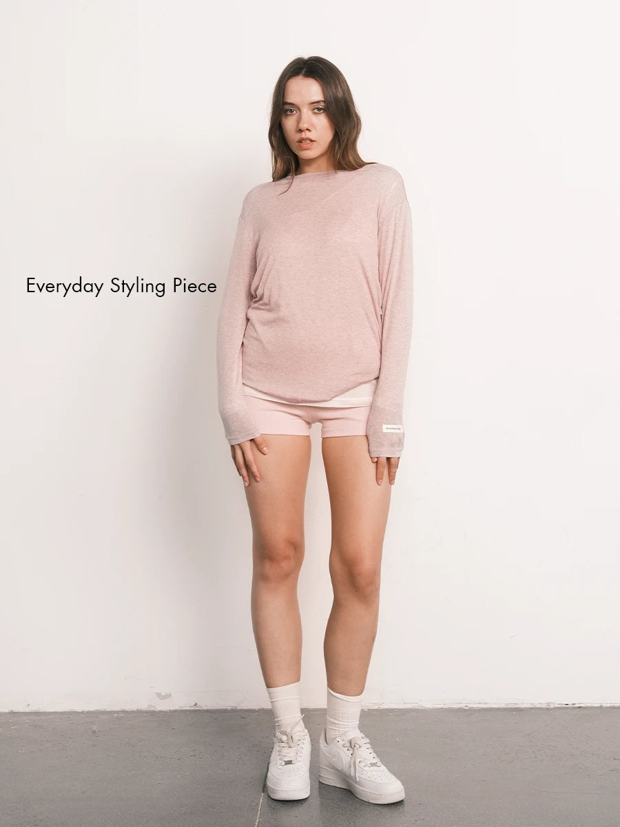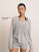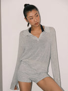 Modern Allure Linen-Tencel Sheer Knit Polo Top