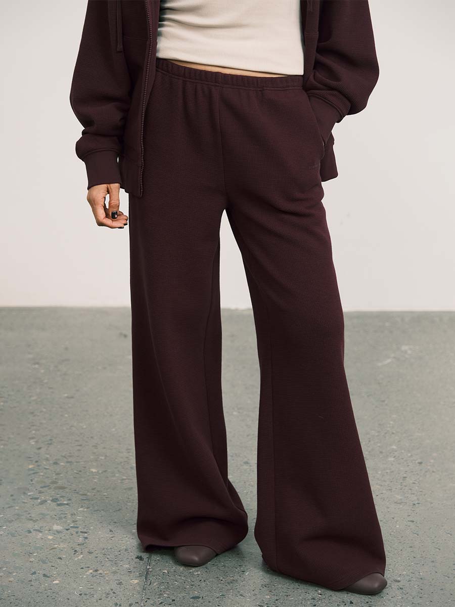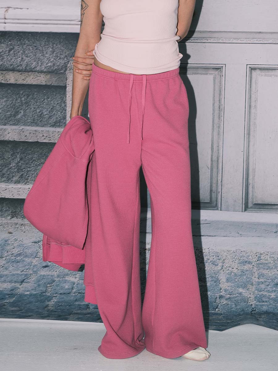 Waffle-Knit Elastic Waist Wide-Leg Pants