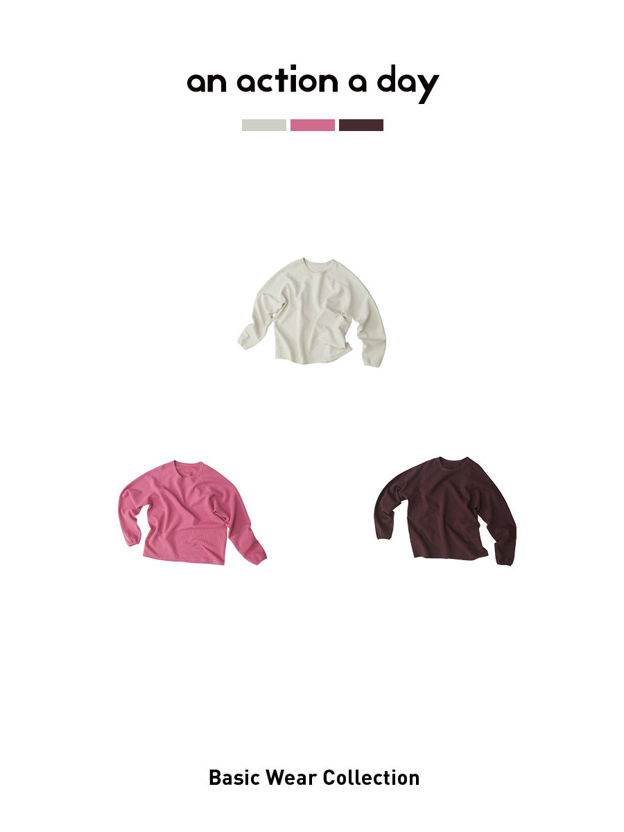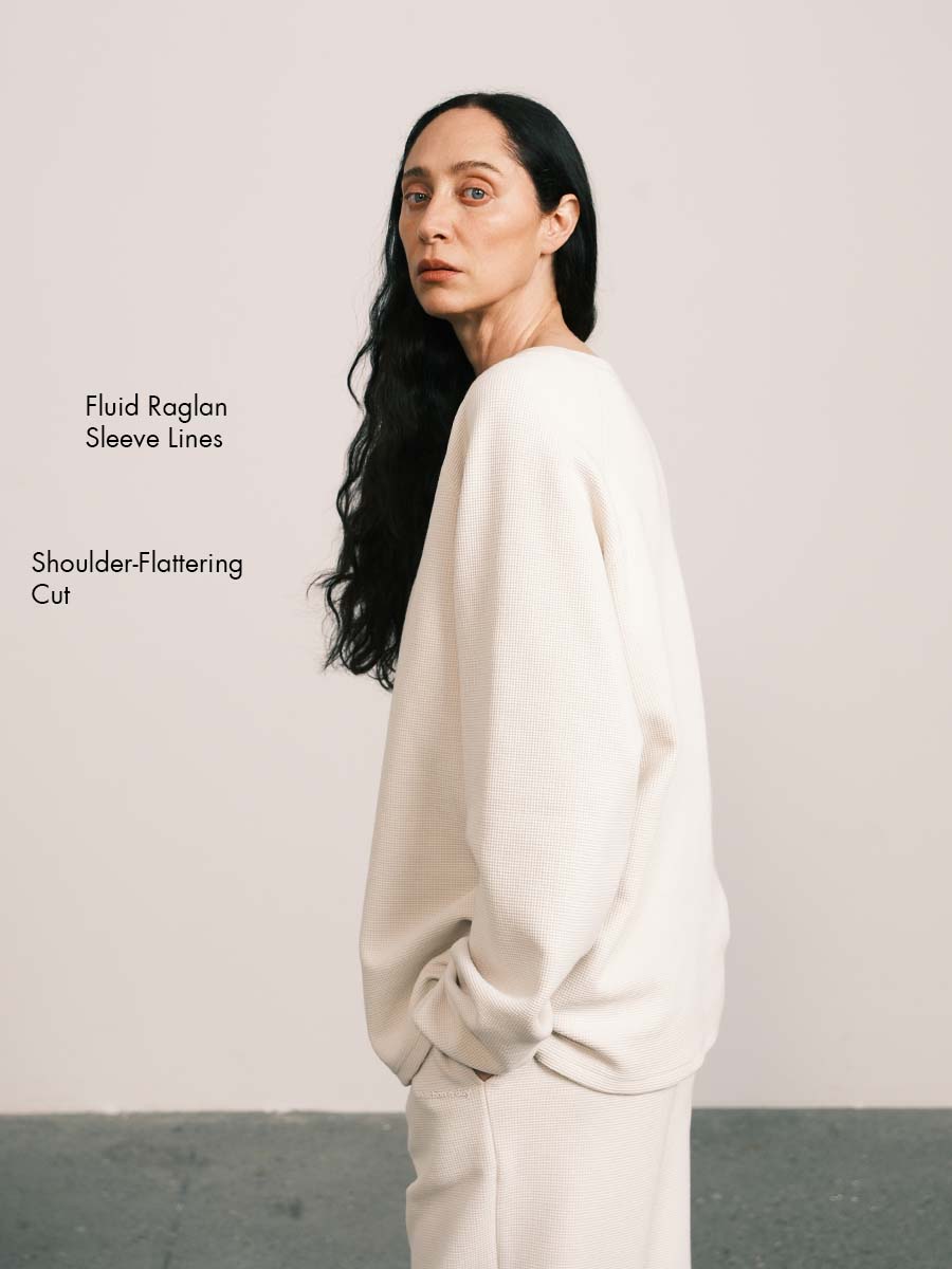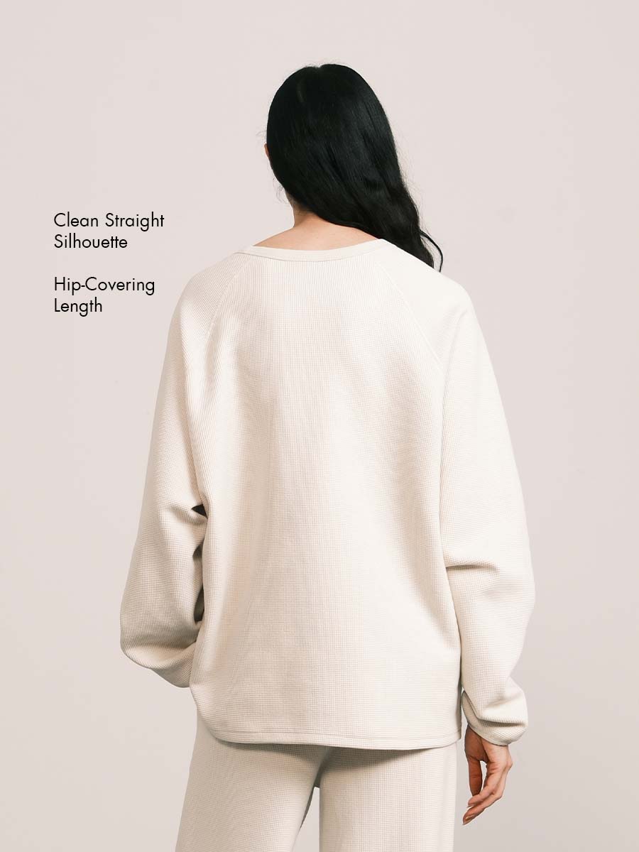 Waffle-Knit Raglan Sleeve Sweatshirt