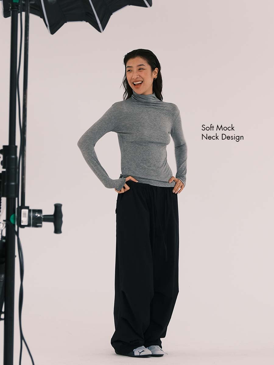 Brushed Ultra-Soft Stretchy Mock Neck Top