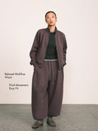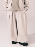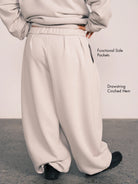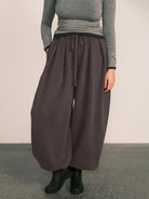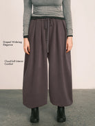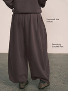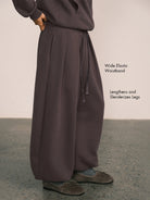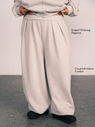 Draped Wide-Leg Cinched Fleece Pants