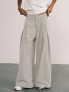 Pleated Wide-Leg Pants with Adjustable Cuffs