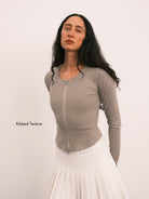 Romee Ribbed Slim Fit Zip Long Sleeve Top