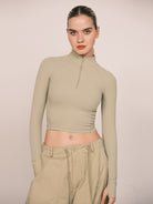 ボディシェイピングストレッチロングスリーブクロップトップ