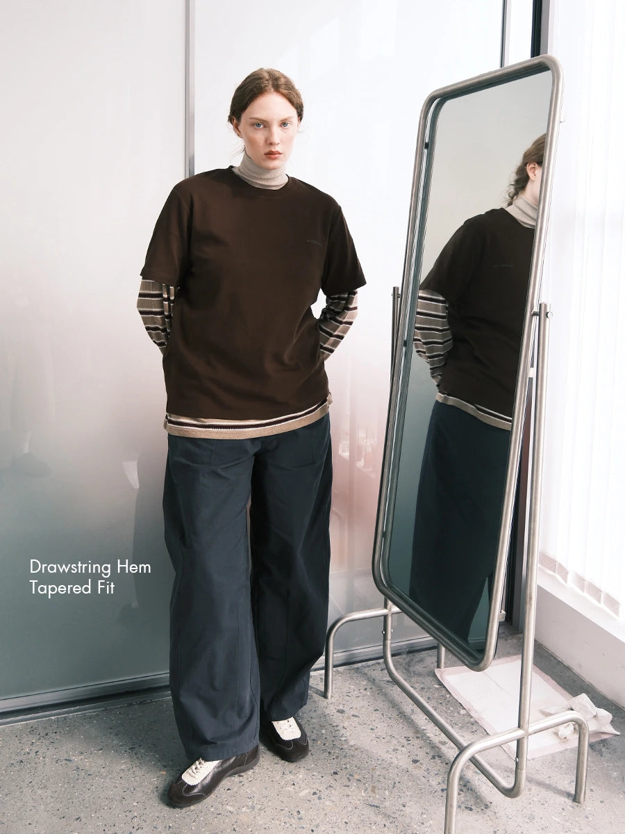控えめなストライプ柄テーパードパンツ
